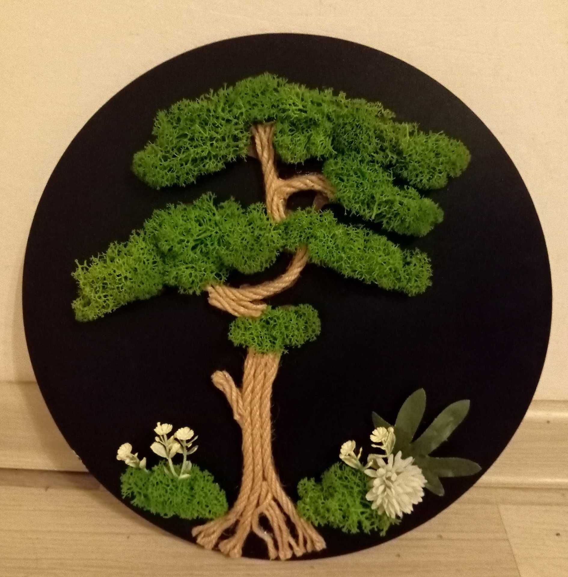 Materiál: MDF čierna hrúbka 3mm, sterilizovaný mach, špagát.