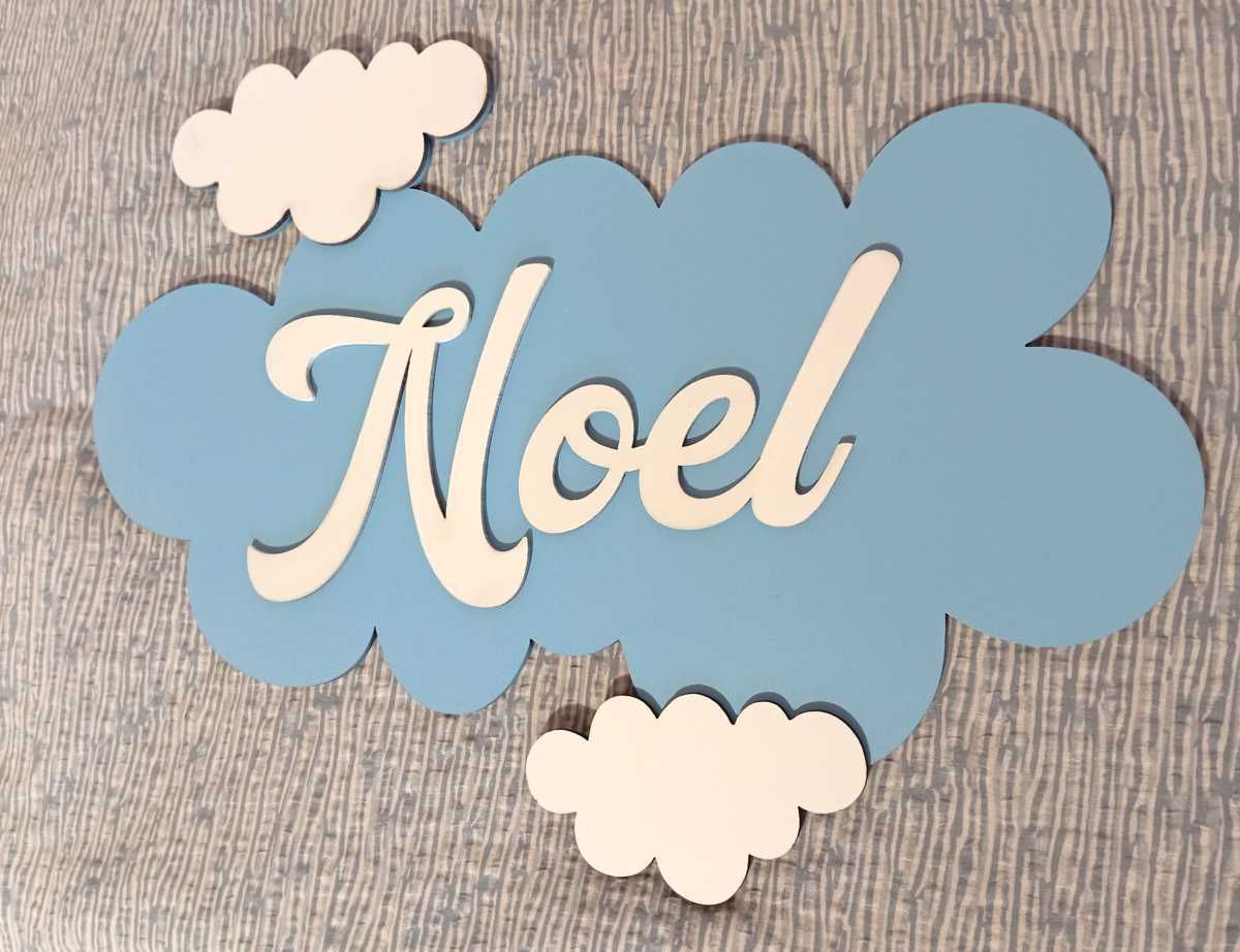 Drevené meno na obláčiku. Mrak dekorácia do detskej izby na stenu.
