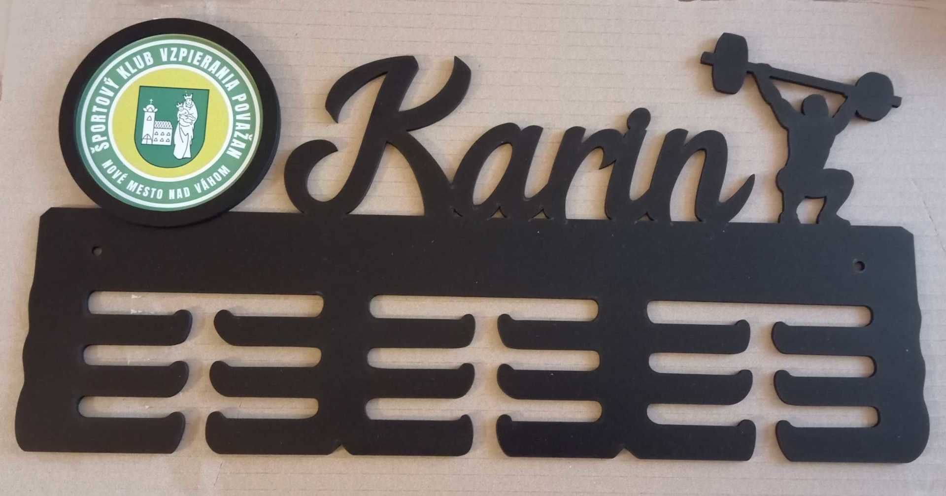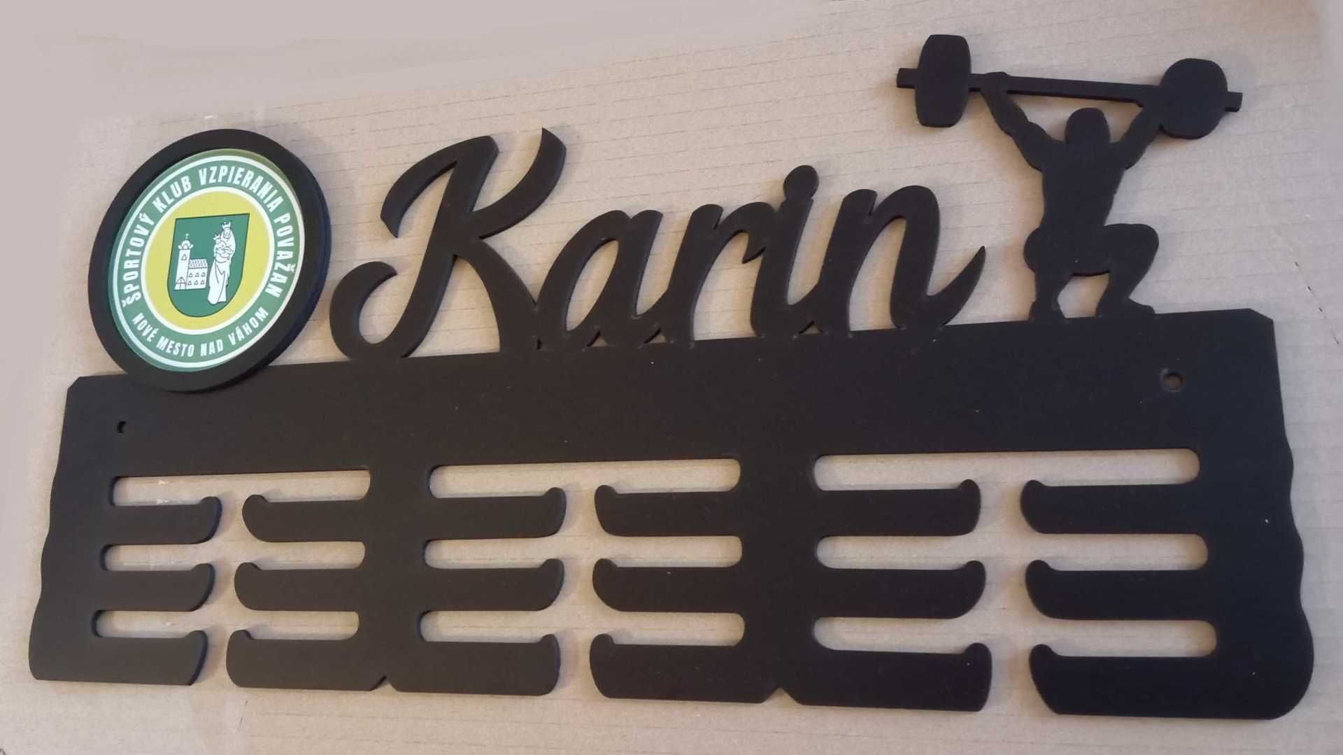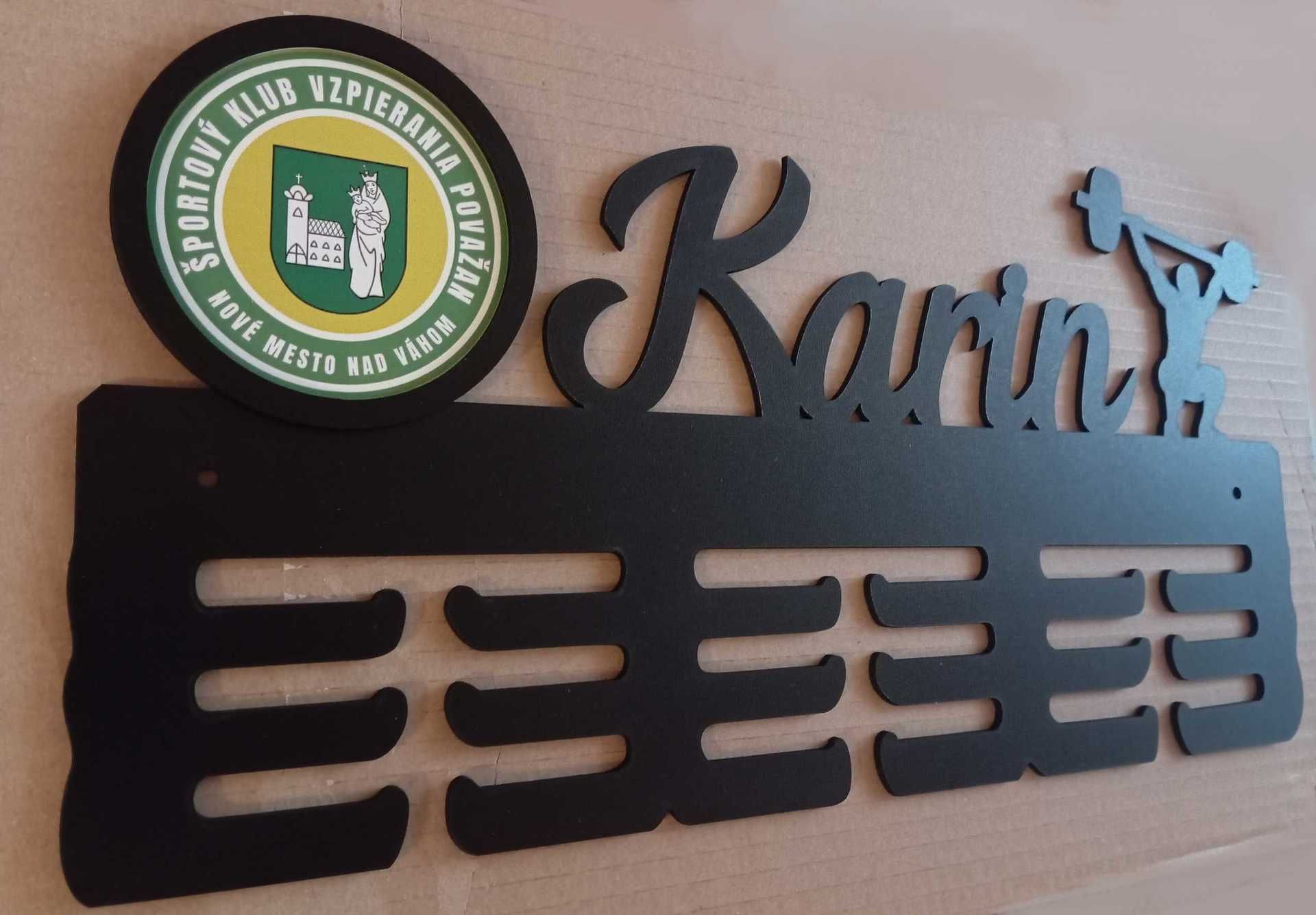 Personalizovaný vešiak na medaily s vlastným menom a logon klubu.