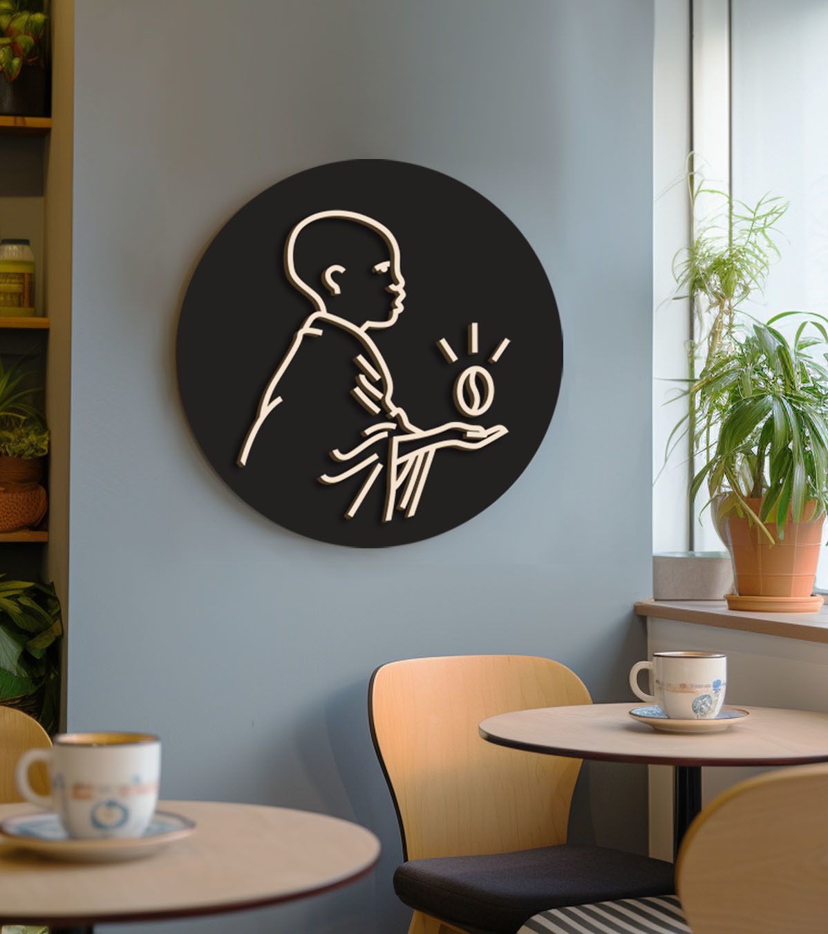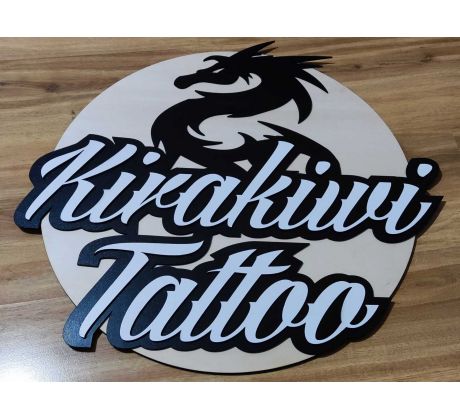 3D logo vyrobené z časti lepením vrstiev na seba. Kombinácia preglejka 5mm a HDF doska 3mm.